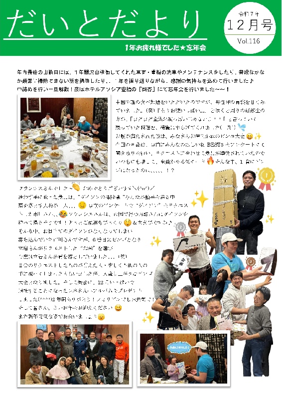 だいとだよりNO.116を更新しました。